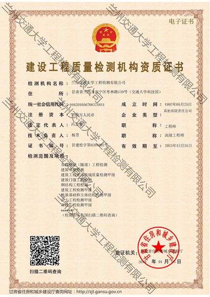 建设工程质量检测机构资质证书