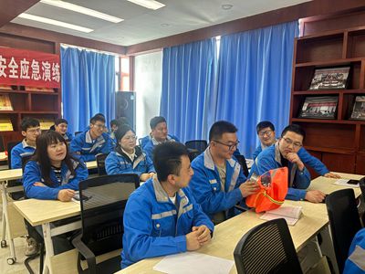 安全应急常识讲解结束后,在消防安全员的示范及指导下,公司职工进行了安全应急演练。