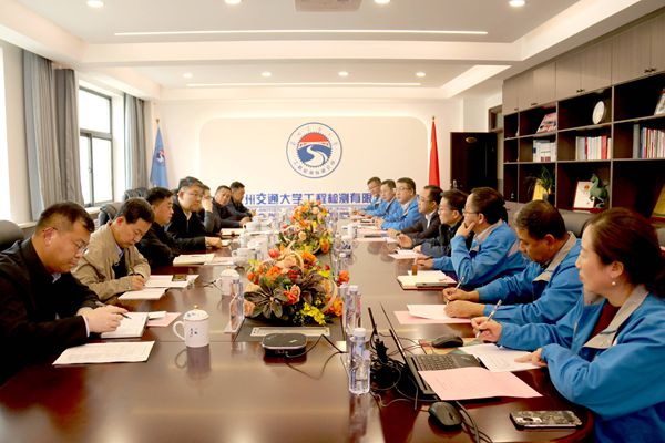 会上,董事长刘欣对刘伟主任、刘向东局长、陈喜春副校长一行表示热烈欢迎,对国家铁路局装备技术中心、兰州铁路监管局和学校给予公司的关心和支持表示诚挚感谢。与会人员观看了《匠心铸魂 笃行致远》企业宣传片,杨芳就公司概况、企业资质、人员环境、设备设施四个方面介绍了公司基本情况。