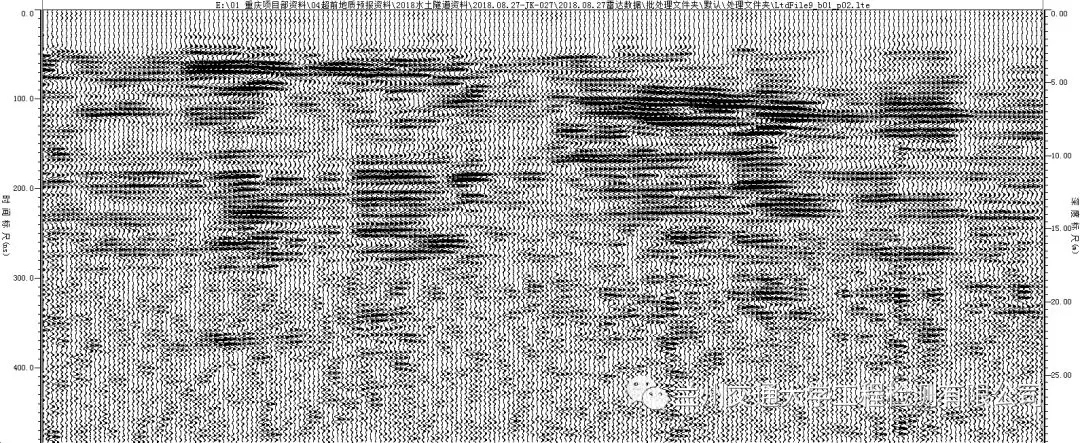 将发射天线和接收天线集于一体,具有分辨率高、快速、无损、连续检测、实时显示等特点。在地表探测5~30m范围内的地下地层或地质异常体(溶洞、土洞、断裂、空隙等)反射信号还是比较明显的,也是一种比较理想的手段。