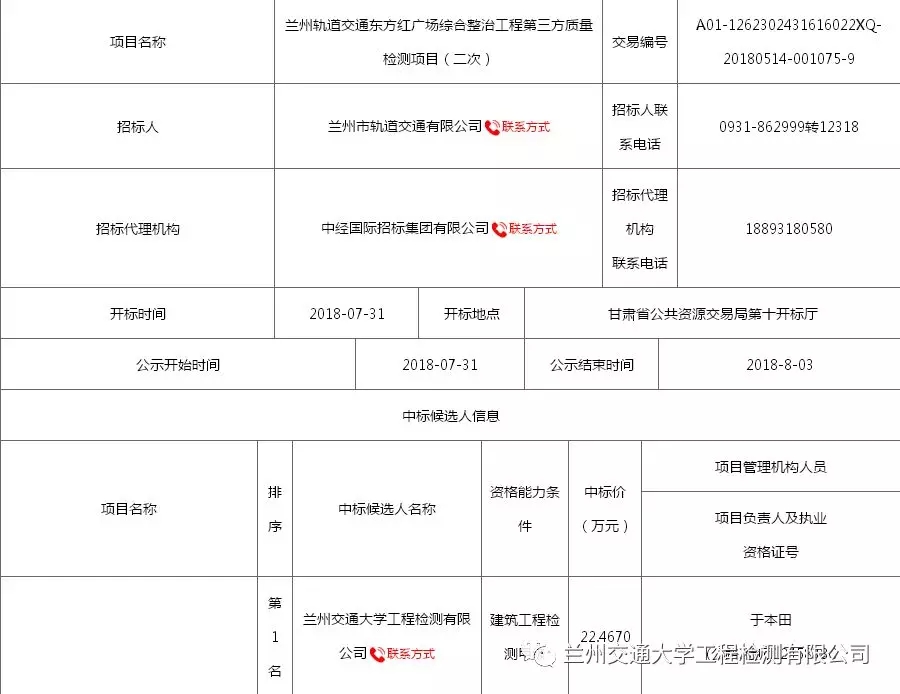 近日,我公司在继甘肃靖远煤电股份有限公司王家山专线(大桥)桥梁检测项目中标后,再夺兰州轨道交通东方红广场综合整治工程第三方质量检测项目,圆满完成7月经营指标。