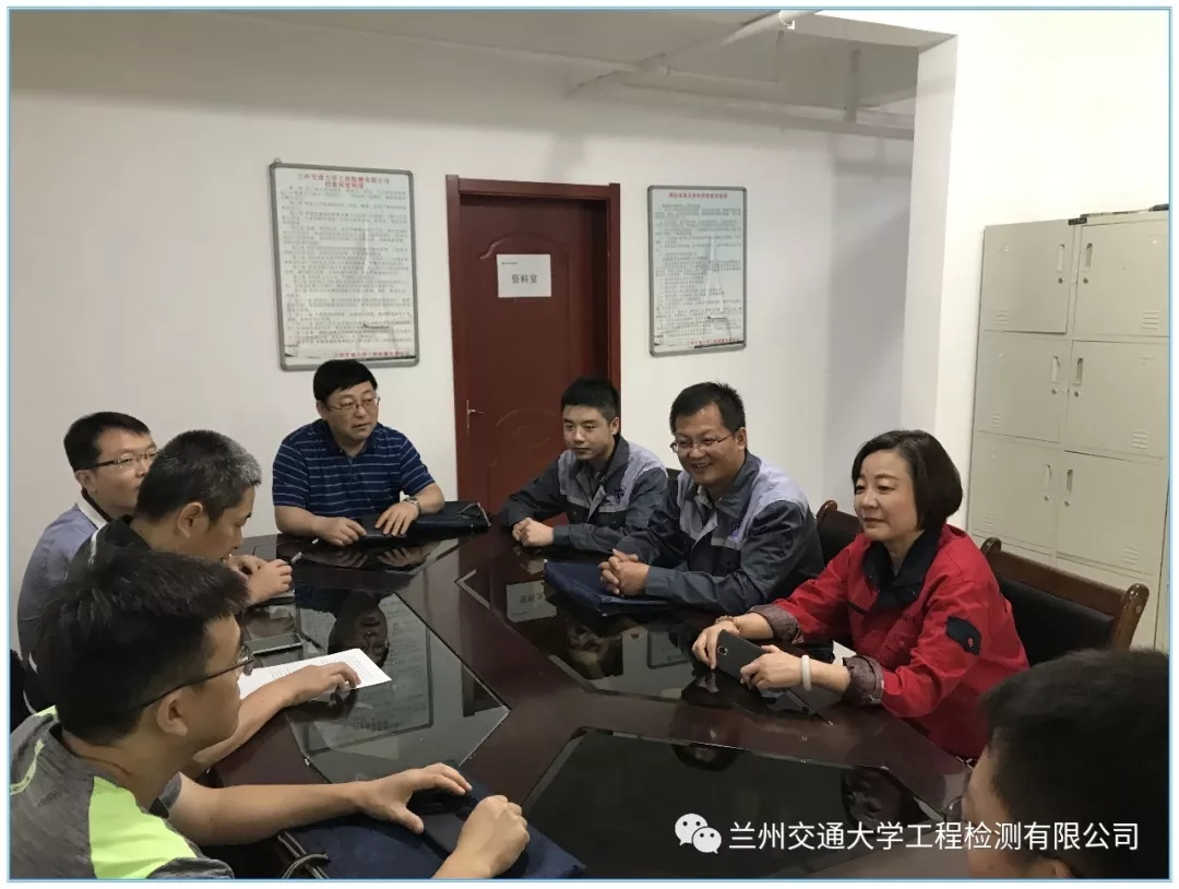 8月16日上午,中国铁路总公司工程质量安全监督总站石新桥处长一行两人在兰州铁路局工程质量安全监督站主要领导的陪同下,到兰州交通大学工程检测有限公司进行调研。兰州交通大学工程检测有限公司董事长韩进、党支部副书记赵剑存以及公司各部室负责人参与调研。