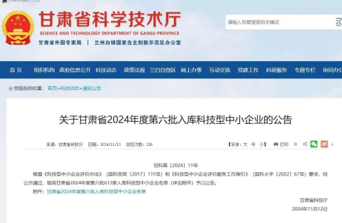 近日,甘肃省科学技术厅发布了《关于甘肃省2024年度第六批入库科技型中小企业的公告》,兰州交通大学工程检测有限公司榜上有名!