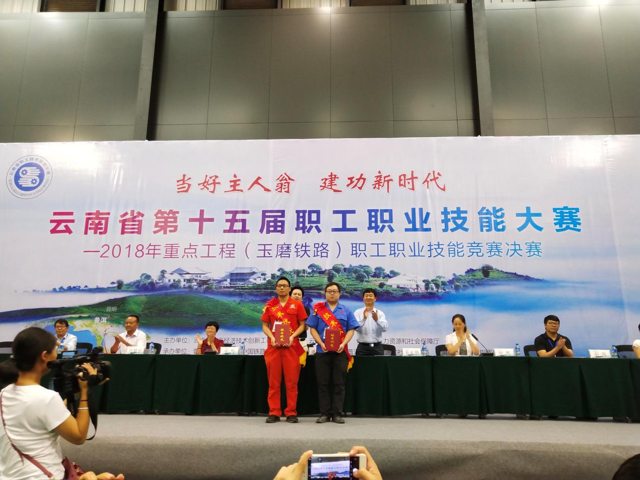 2018年6月28日,应滇南铁路有限责任公司邀请,兰州交通大学工程检测有限公司玉磨铁路第三方检测3标项目部院天斌、李一涛2名人员,参与了云南省第十五届职工职业技能大赛-2018年重点工程(玉磨铁路)职工职业技能竞赛决赛的裁判工作,进行技能竞赛实操部分监考并评分。