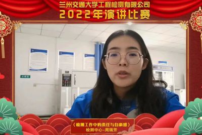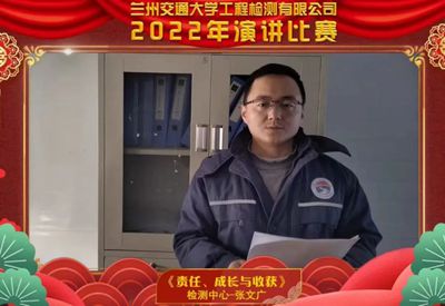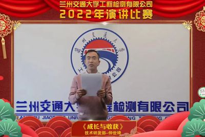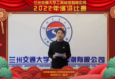2023年1月14日下午,兰州交通大学工程检测有限公司2022年演讲比赛如约而至,交检人共同相聚在线上,举办了以“公司介绍、检测工作中的责任与自豪感、疫情下的交检风采”为主题的演讲比赛。