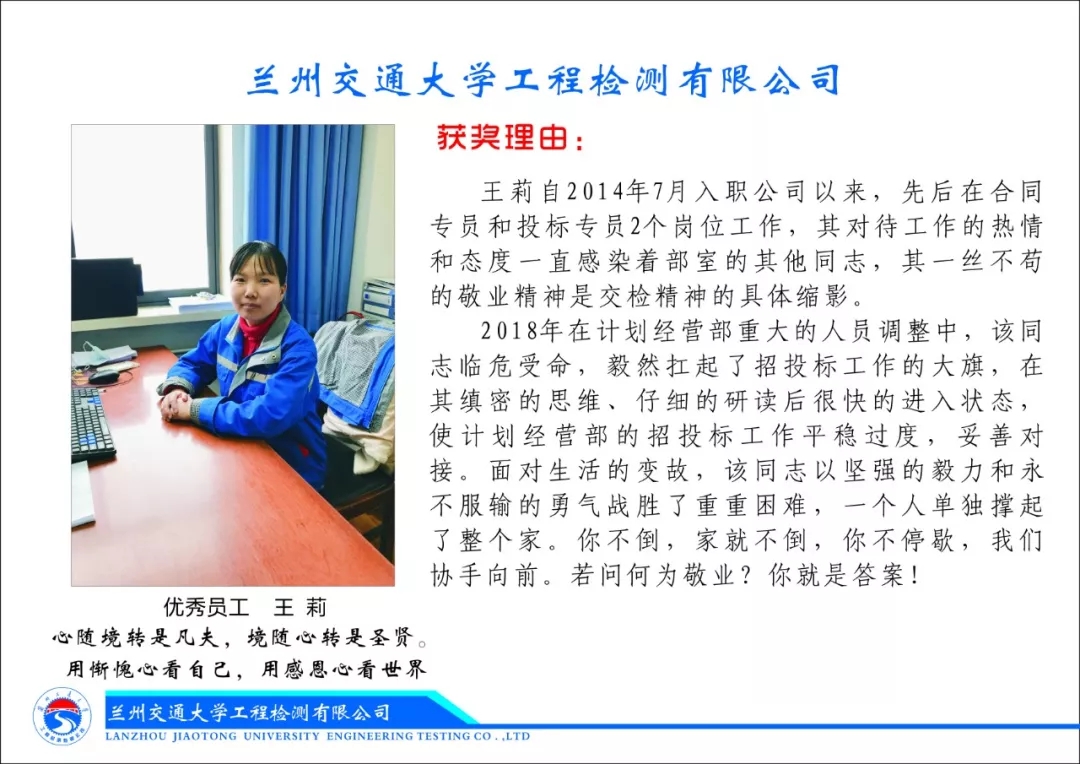 明确的目标、共同的协作、和谐的氛围是你们的形象;大局的意识、积极的心态、周到的服务是你们的风采。这里是展示专长的舞台,更是发挥集体力量的沃土。一致的认同感、归属感,凝聚成共同的向心力、战斗力,你们是最优秀的交检人。