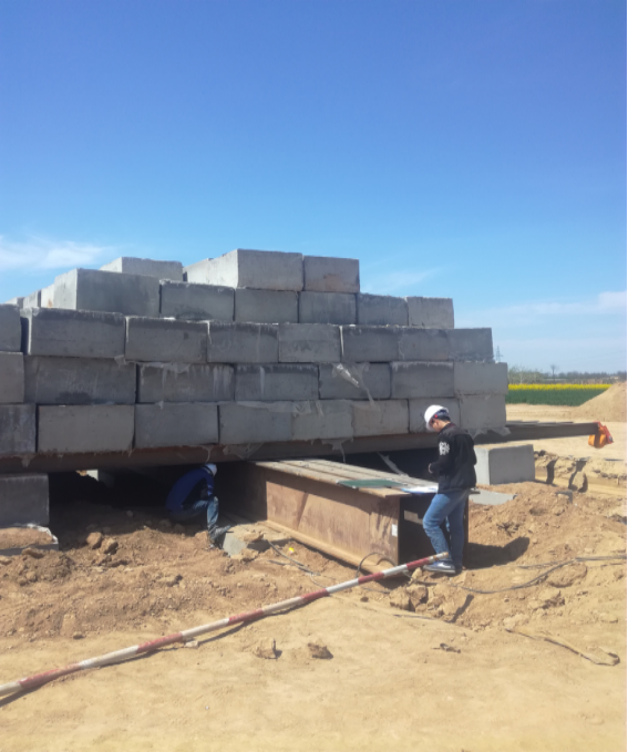 图为多桩复合地基承载力检测,检测对原地面进行处理后的承载力大小。