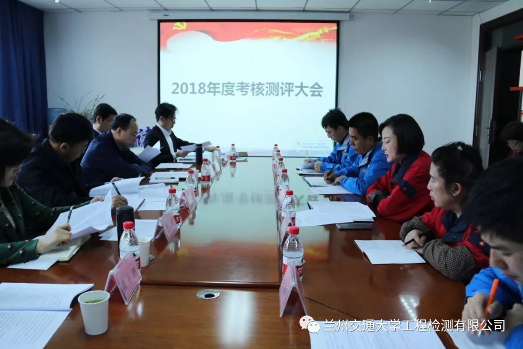 2019年4月12日上午,兰州交通大学工程检测有限公司在公司会议室召开2018年度领导班子、领导干部及党建工作责任制考核测评大会,国资委党委第二考核组组长巩继忠出席会议并讲话,考核组成员杨玲、王为民、雒晓勇、韩小鹏、童冰聪出席会议。会议由公司党支部书记杜宏杰主持。